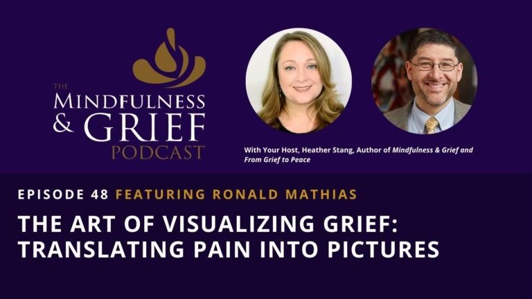 Heather Stang is the host of the Mindfulness & Grief Podcast and author of several books including the guided journal From Grief to Peace. She and Ron crossed paths as a result of their contributions to Jill Harrington and Robert Neimeyer’s book, Superhero Grief: The Transformative Power of Loss. Heather penned the chapter titled “Mindfulness as Your Grief Superpower” while Ron produced the cover art for the book.
